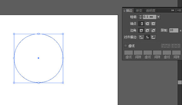 然后选择椭圆工具,鼠标左键在画板上面单击,绘制一个100mm*100mm的正圆,填充选择无,描边选择0.1mm,描边内侧对齐,