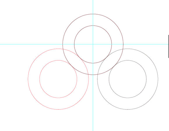 将刚群组好的圆命名为圆1,然后按住ATL键移动复制得到圆2,拖放到如下图所指示的位置,让两个圆居中对齐,并且圆2的外路径和圆1的内路径对齐,之后将圆1和圆2全选群组命名为圆3