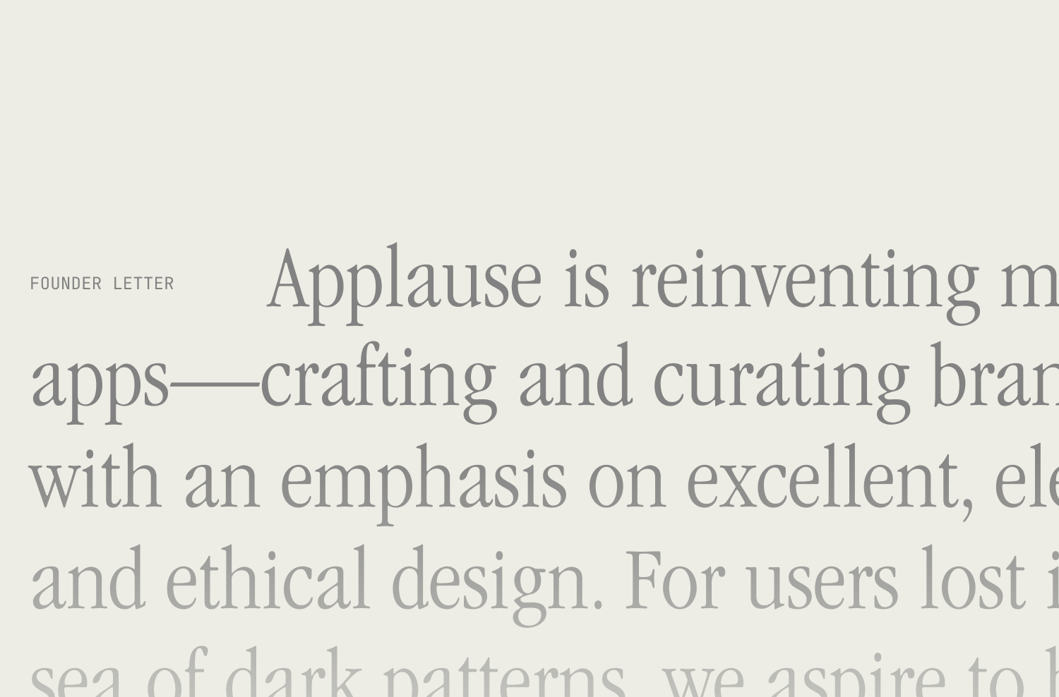 Applause的logo设计是品牌包装策划中的一大亮点。它巧妙地融合了三种截然不同的视觉风格:经典的瑞士字体奠定了品牌的基础,交替的线条则是对80年代数字印刷技术的致敬,而圆角设计则借鉴了苹果的用户体验原则。这一设计不仅庆祝了精心设计技术的永恒性,也展现了Applause对创新与品质的不懈追求。