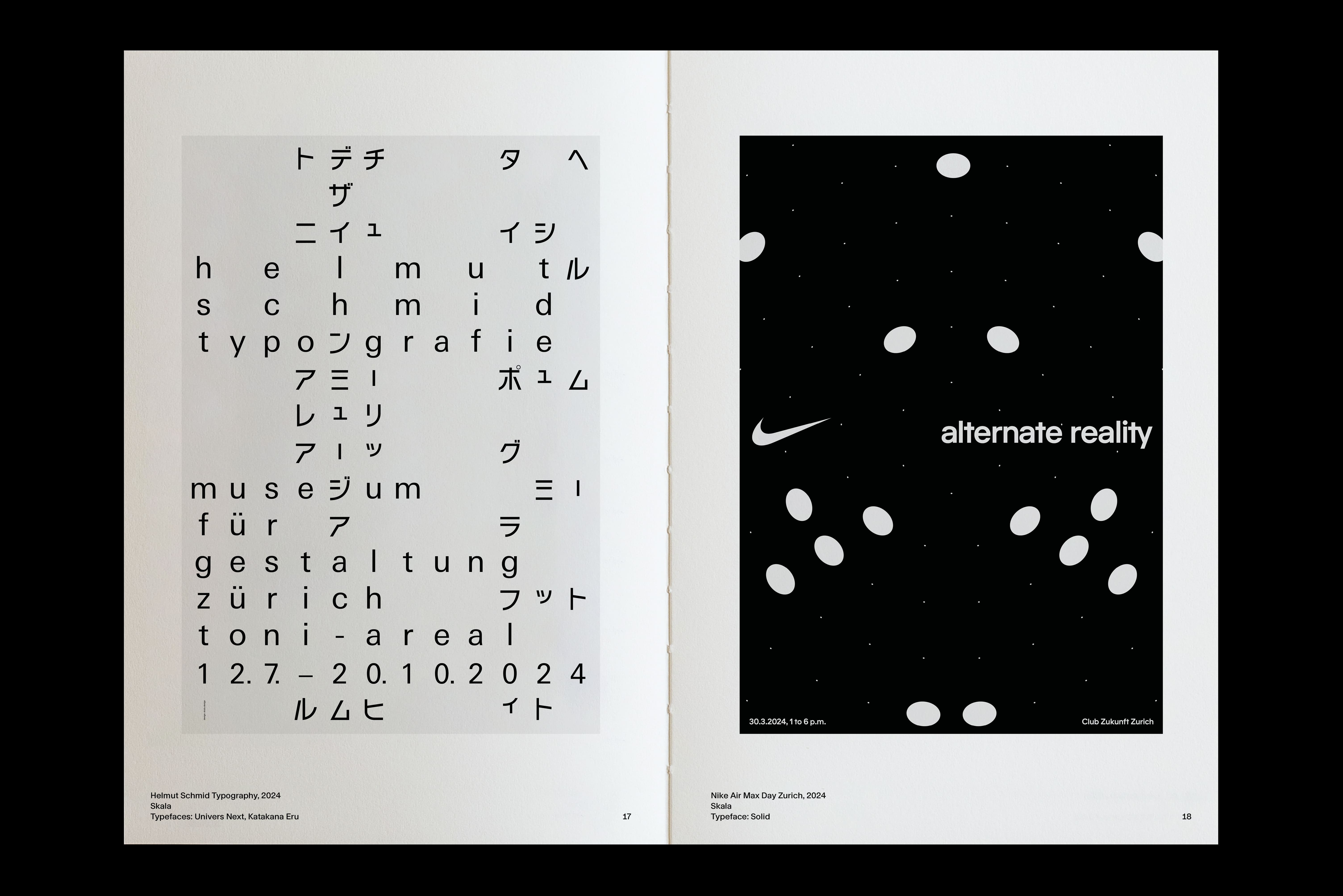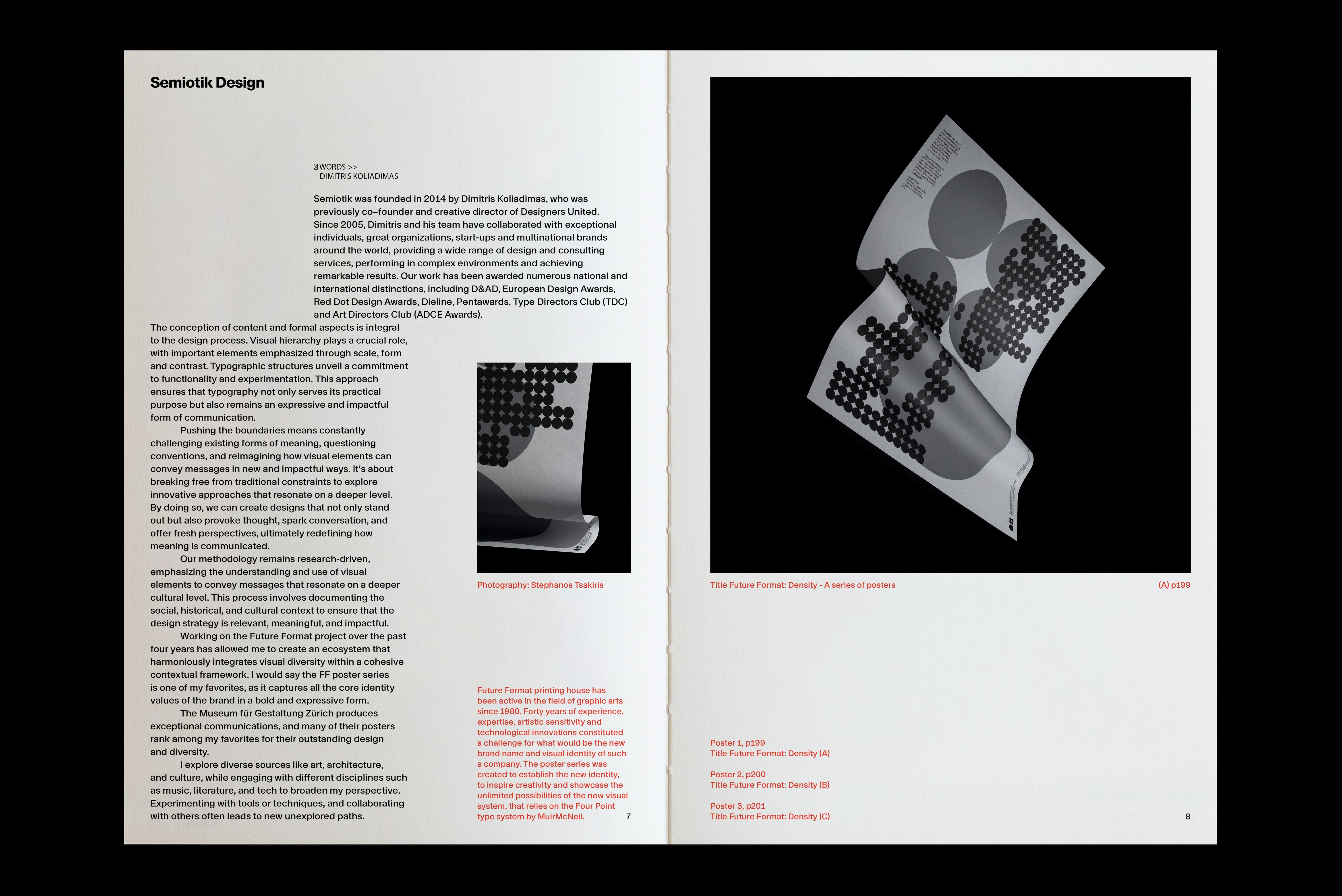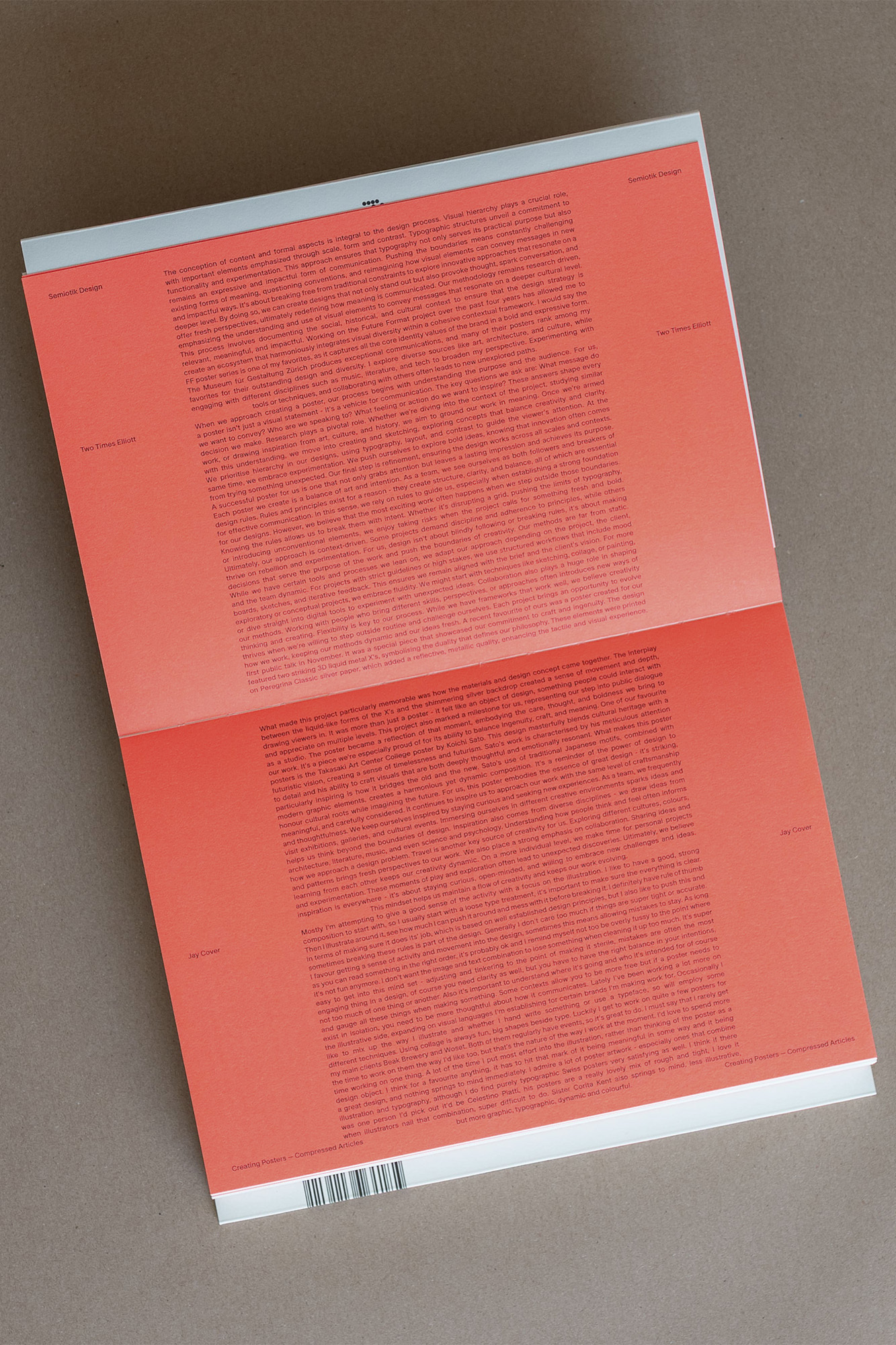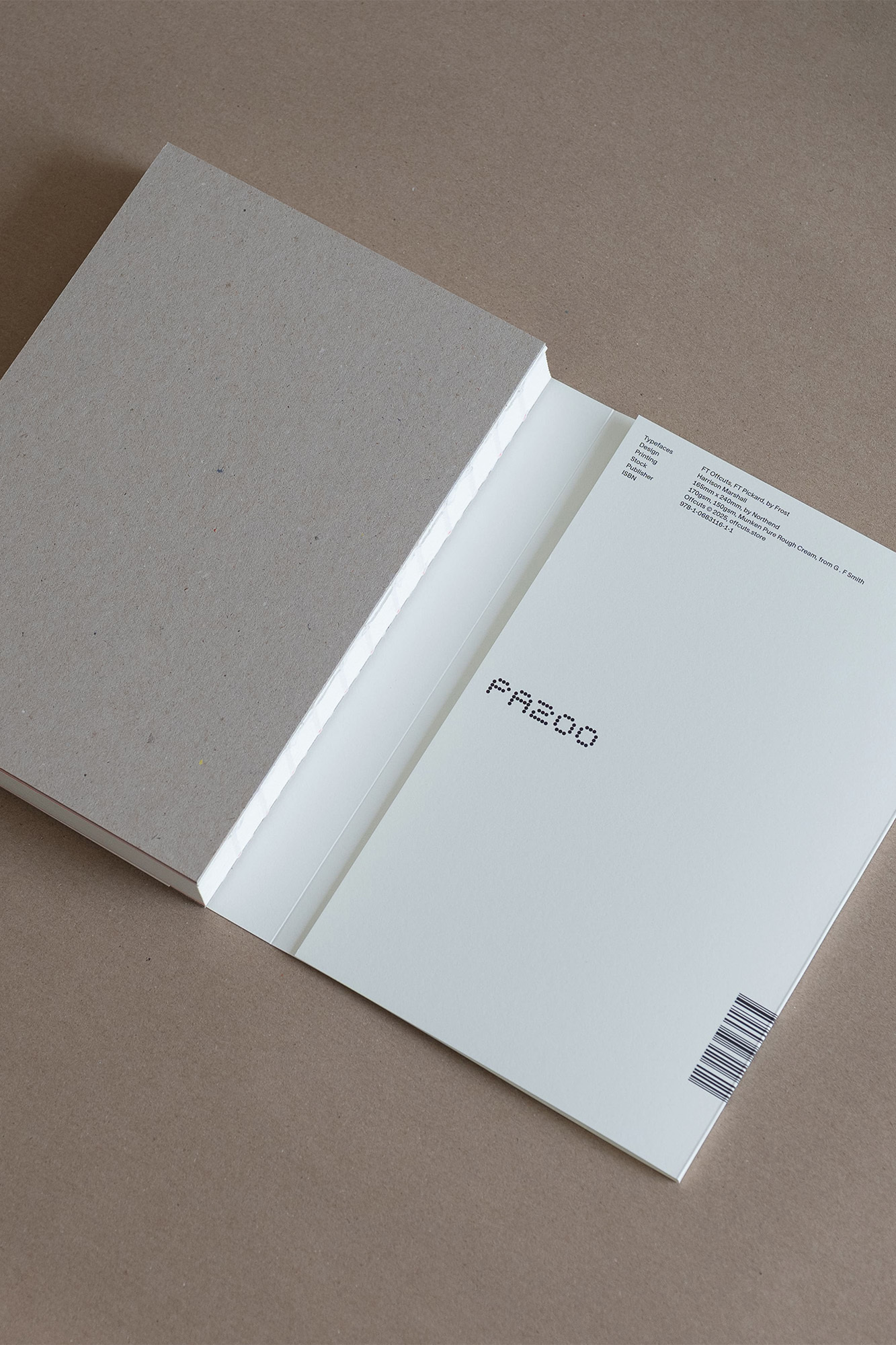 这本 226 页的书籍,尺寸为 165mm x 240mm,采用锁线装订,内文纸选用 170gsm 的 Munken Pure Rough 奶油色纸张。在字体使用上,全书统一采用了 FT Offcuts 和 FT Goddard,形成了连贯的视觉语言。