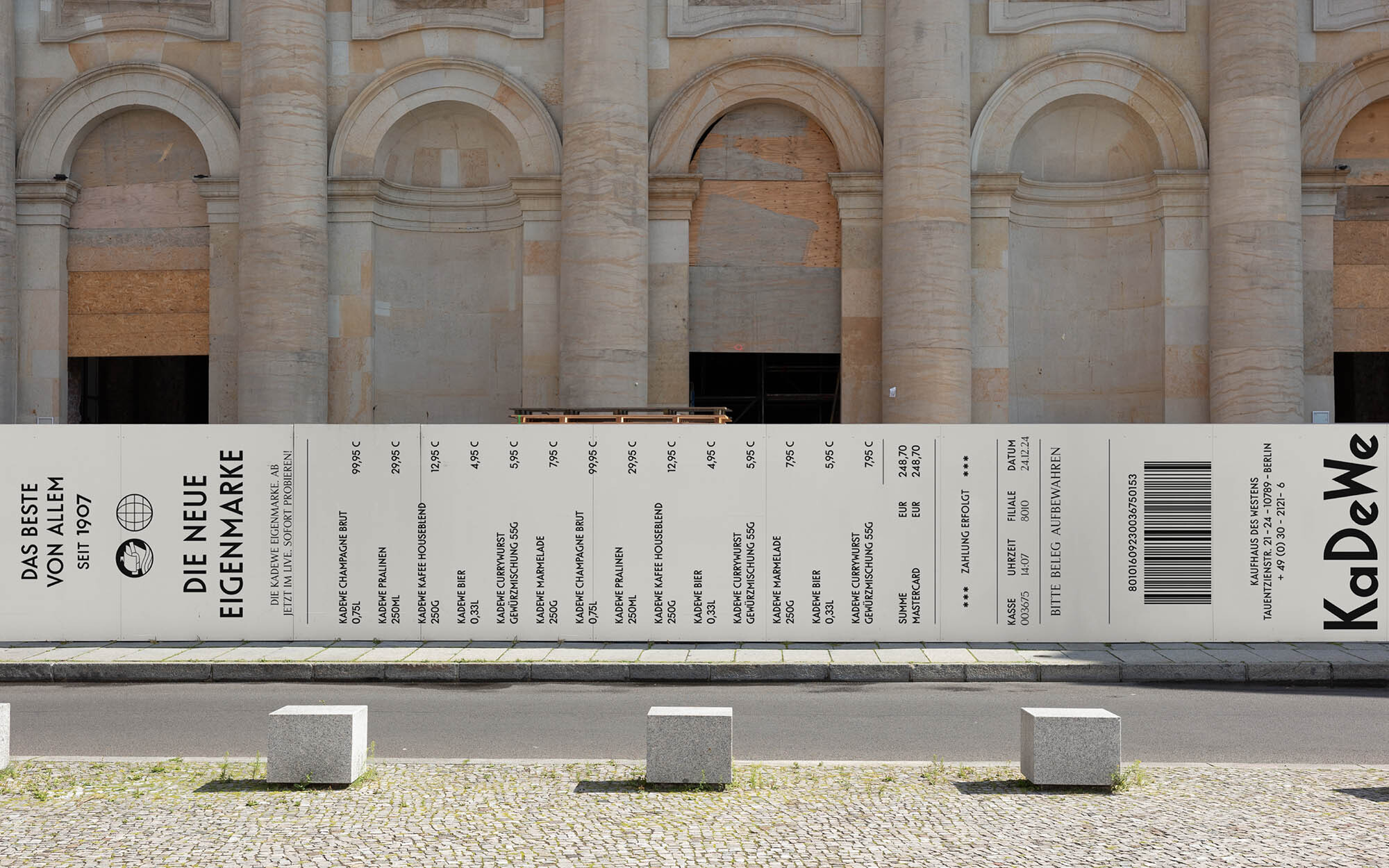 入口大门的丰富装饰被转化为现代形式的装饰图案,成为整个项目的关键视觉元素。这一设计不仅保留了建筑的历史韵味,还赋予了包装一种独特的奢华感。同时,设计团队还开发了两款定制字体——无衬线体和衬线体,均基于KaDeWe标志性的六字母logo的几何形状构建。无衬线体用于标题,衬线体则用于增添更精致、价值导向的触感。