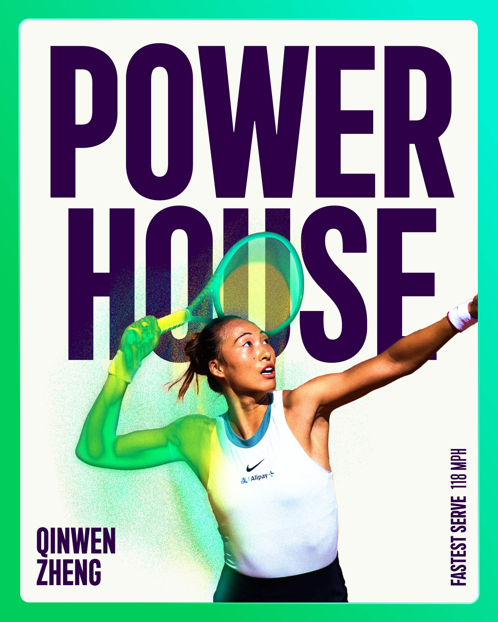 在色彩选择上,多托透露:“早期创意过程中,我们对女子体育品牌进行了色彩审计,发现近90%的品牌依赖紫色作为主色调。”因此,团队引入了大胆的“能量绿”渐变,灵感源自游戏美学,搭配浓郁的“传承紫”,既致敬了WTA的传统,又象征着进化与进步。这一组合在视觉上脱颖而出,强化了品牌的现代感和戏剧性。