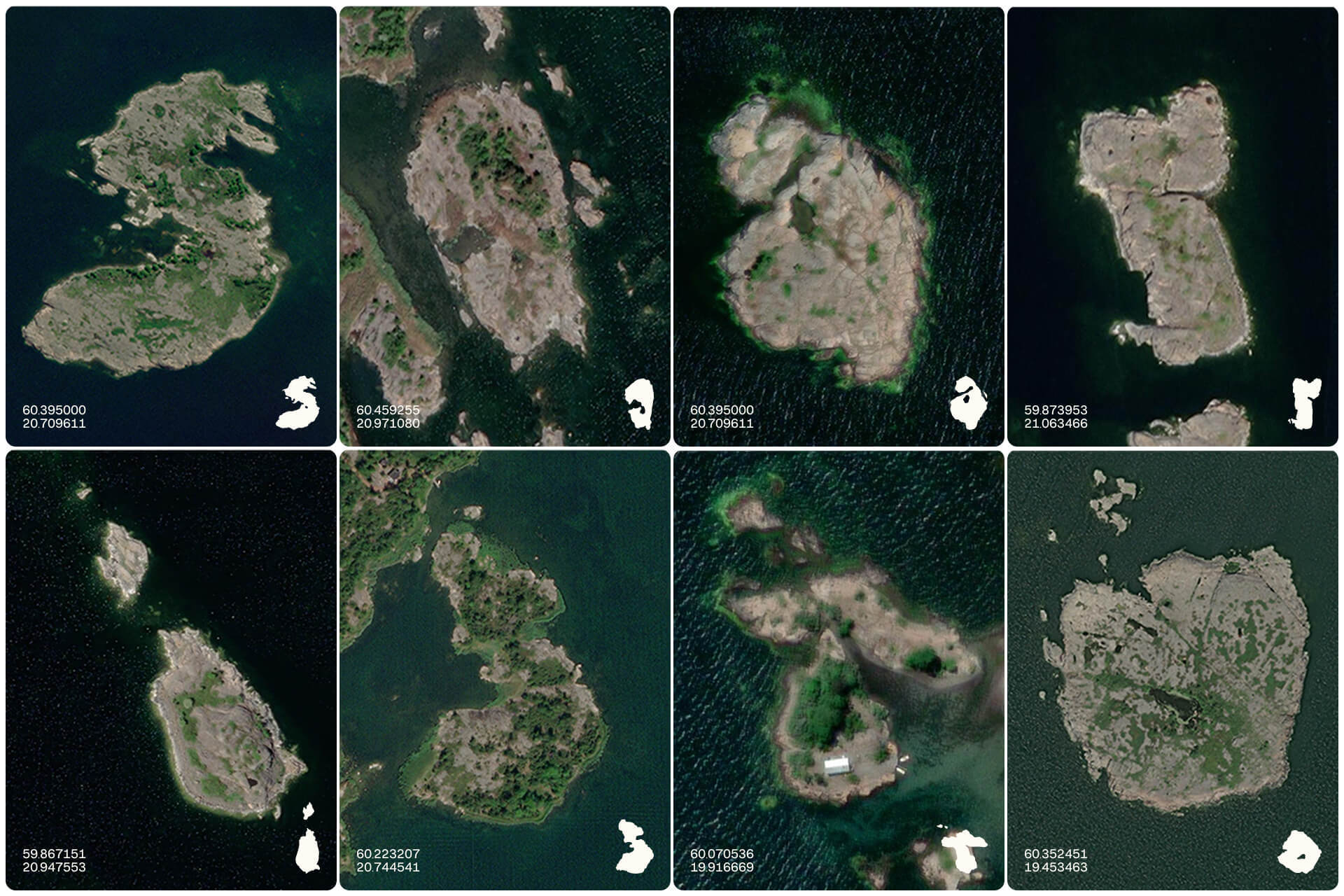 为了构建独特的logo,设计团队花费了无数小时探索Google地图,坚信在4万个岛屿中,能够找到隐藏在岛屿形状中的字母。他们逐一筛选、截图并标记出可能用作字母的岛屿形状。为了确保每个字母的细节一致,每个选定的岛屿形状都先被打印出来,然后手工描绘,再扫描并在Illustrator中精心重绘。最终的设计直接取自群岛中八个真实岛屿的轮廓,是对该地区的完美致敬。