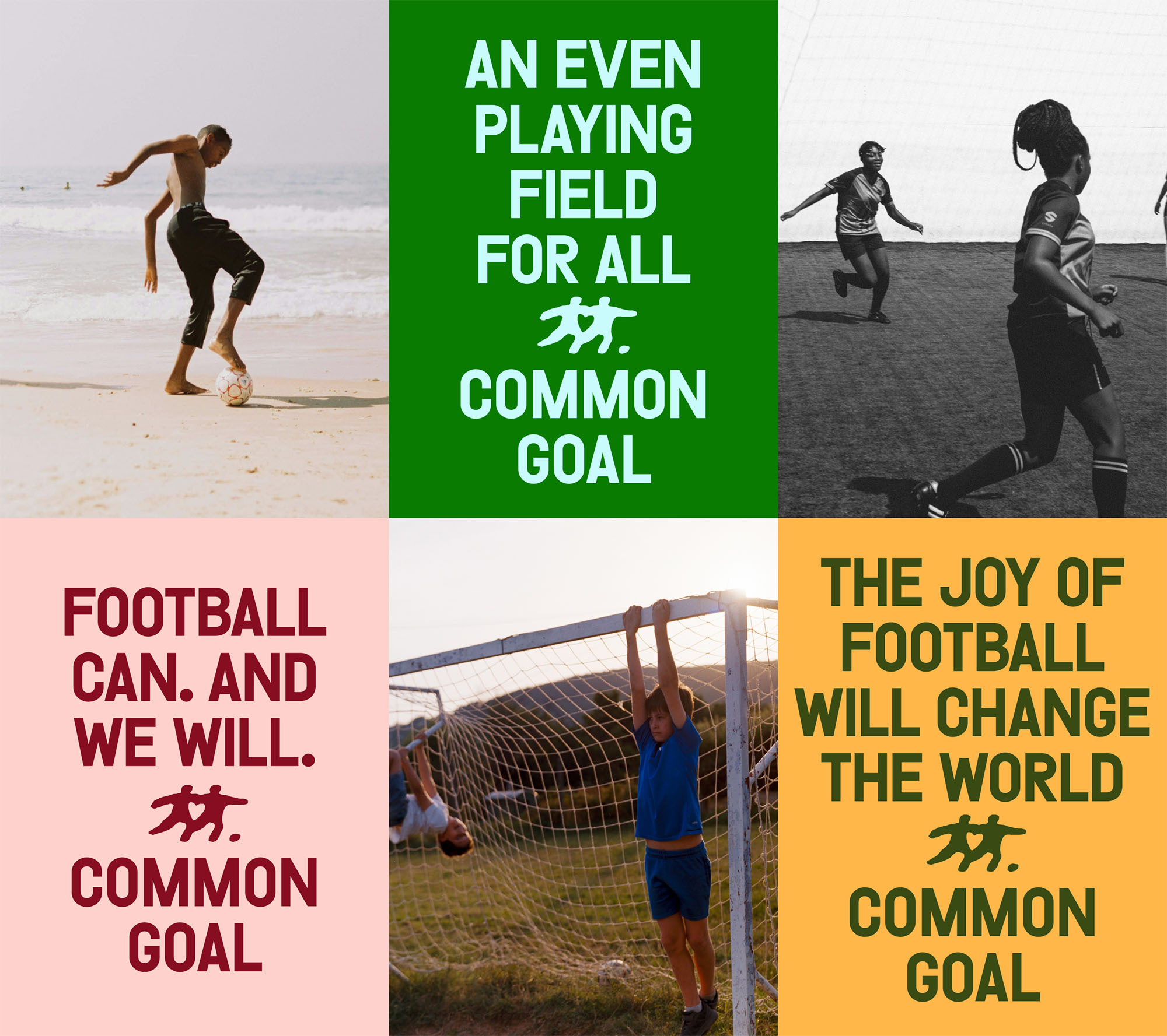 通过品牌形象设计的立体构建,Common Goal完成从”慈善平台”到”文化符号”的升级。新slogan”足球赋能美好”(Football for Good)与品牌叙事深度绑定,配合女性世界杯2025、男子世界杯2026等重大赛事节点,形成持续的社会议题发酵能力。